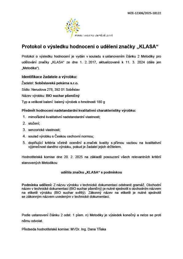 CHLÉB VYNIKAJÍCÍ KVALITY 2024