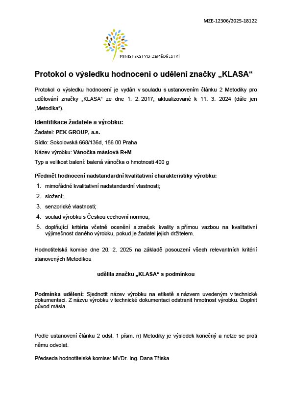 Dne 2.11.2023 se v Národním zemědělském muzeu v Praze vyhlašovalo ocenění Česká chuťovka a Dětská chuťovka. Jsme velmi potěšeni, že jsme obě tato ocenění získali. Ocenění zákazníkům zaručuje, že dané potraviny jsou nejen vysoce kvalitní, ale především vynikají skvělou chutí. „Vánočka s fruktózou“ získala ocenění Dětská chuťovka