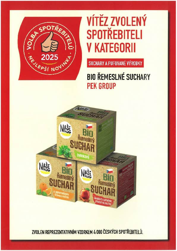 Dne 2.11.2023 se v Národním zemědělském muzeu v Praze vyhlašovalo také ocenění Česká chuťovka . Toto ocenění získal „Náš pecen“ a my jsme velmi rádi, protože jde již o druhé ocenění tohoto výrobku. V r. 2022 získal také ocenění Chléb vynikající kvality. Tato ocenění zákazníkům zaručuje, že dané potraviny jsou nejen vysoce kvalitní, ale především vynikají skvělou chutí.
